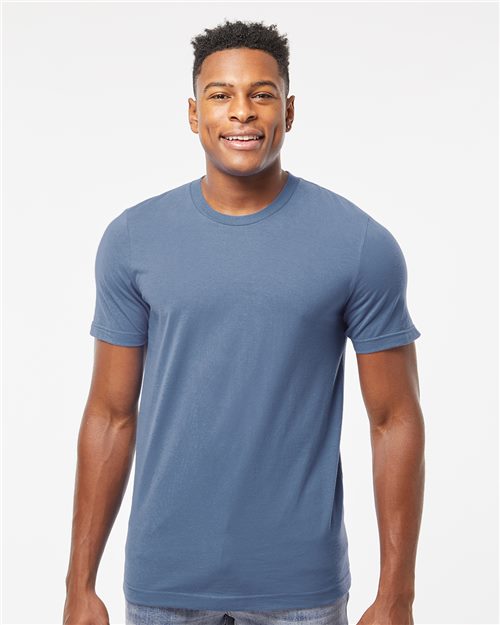 - 4.3 oz./yd²., 100% combed ringspun USA premium cotton fine jersey, 30 singles